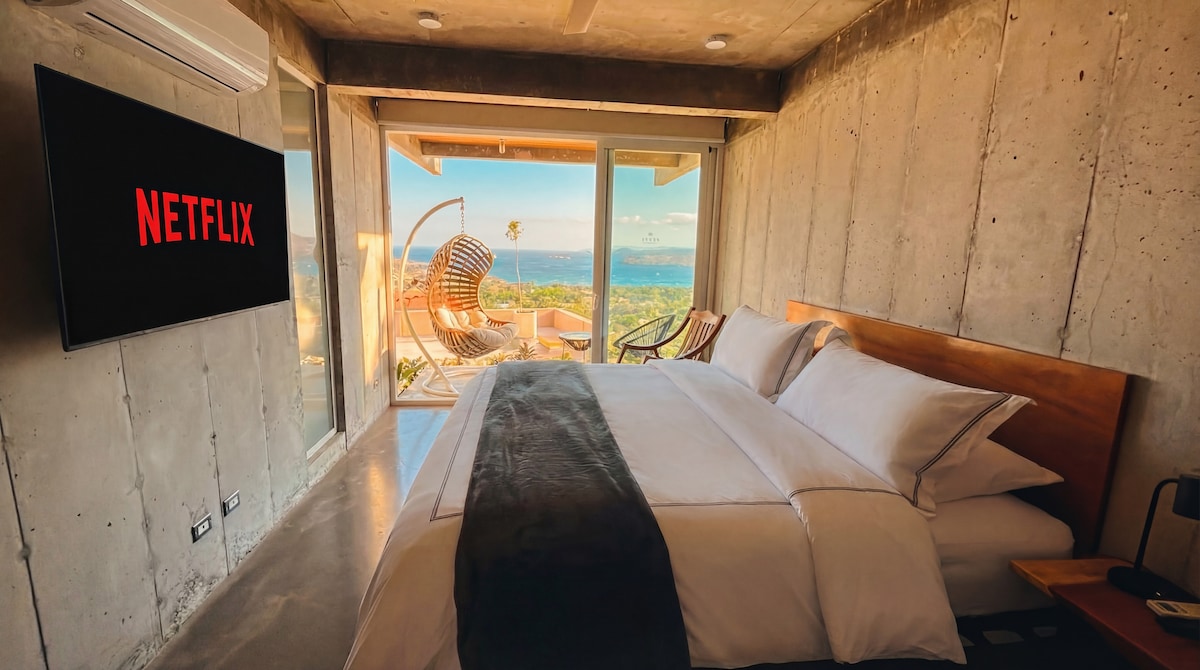 Från detta läge på toppen av kullen ovanför Tamarindo Bay kommer du att njuta av en panoramavy som är otrolig. Du kommer att se vad vi menar när du kommer hit! Casita erbjuder en dubbelsäng och en nedfällbar Queen-säng, fullt utrustad med ett eget badrum, kök och en liten balkong med havsutsikt och perfekt för att titta på apor i de omgivande träden! Du får också tillgång till boendets sociala utrymme, inklusive en luftig täckt terrass vid poolen med havsutsikt och takterrass!