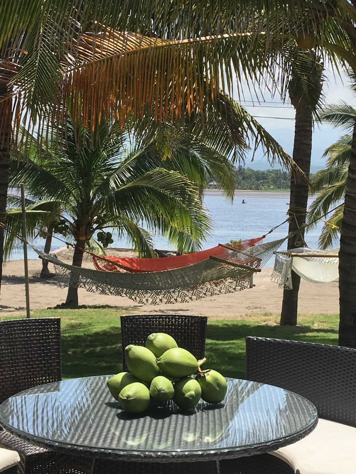 En verkligt spektakulär miljö... Huset ligger på en halvö nära slutet av La Barra de Santiago Beach i El Salvador. Utsikt över Stilla havet på ena sidan och flodmynningen med en vacker bergskedja på den andra.