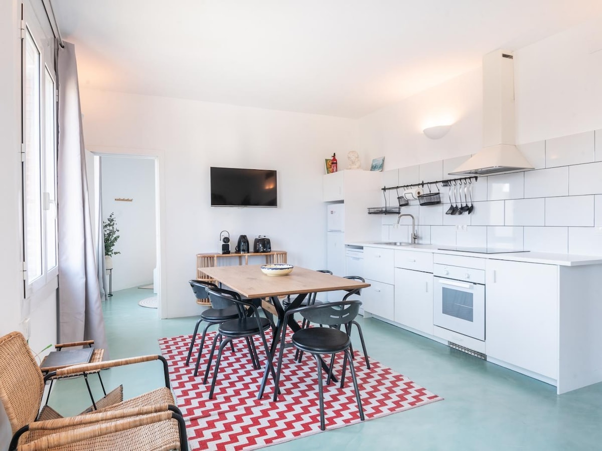 Barcelona debiterar turistpris på 6,25 € x pers x natt ingår inte i priset. Från och med den 1 april 2026 kommer avgiften att vara 9,50 €. Läs husreglerna. Spektakulär lägenhet upp till 6 gäster minuter från stranden. Perfekt för familjer eller par som vill njuta av ett lyxigt boende. Wi-Fi, TV, luftkonditionering, värme och fullt utrustat kök. Det har en balkong och det finns bra förbindelser med tunnelbana och buss. Parkering i samma byggnad för 10 euro/dag