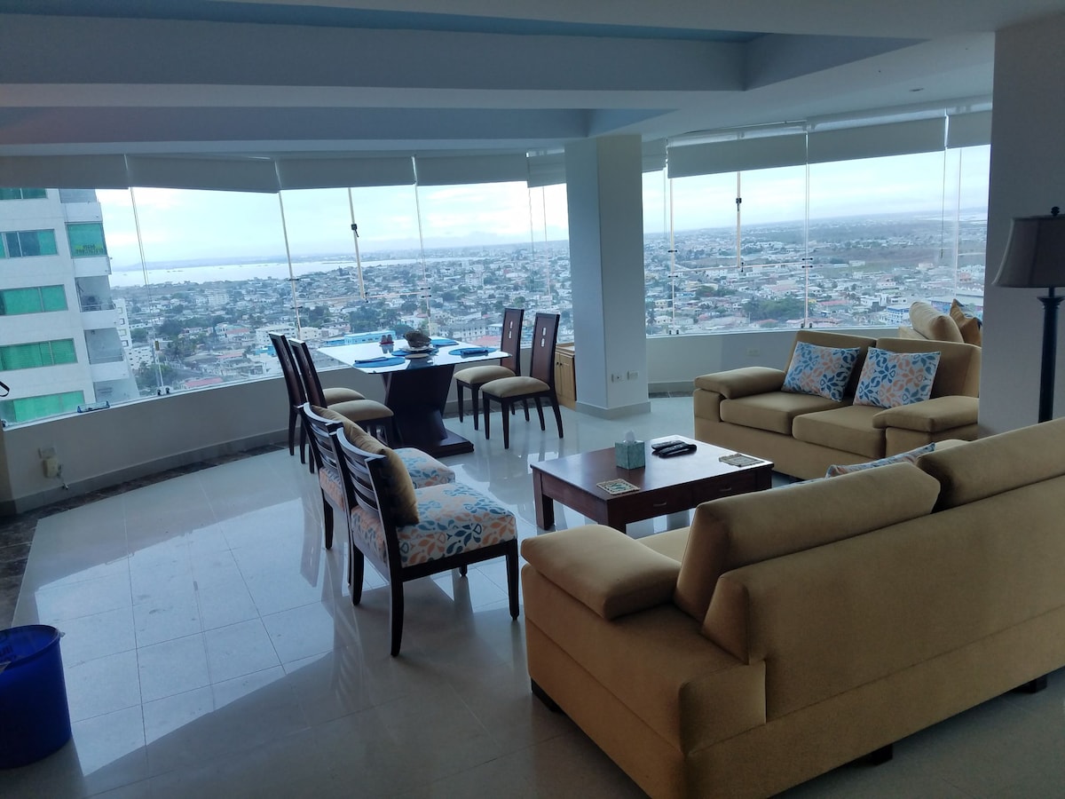 Unik modern mysig lägenhet, fullt utrustad med vacker utsikt över Chipipe/Mar Bravo Luftkonditionering i de 3 sovrummen, vardagsrum och matsal. Wifi Internet. Lyxig byggnad med förstklassiga tjänster. Vid foten av Chipipe-stranden, intill militärbasen, meter från Chocolatera, Lobería Mirador el Morro. Säkert bostadsområde perfekt för cykelturer och promenader längs stranden, du kommer att se unika solnedgångar från balkongerna. 1 parkeringsplats gratis elektrisk grind. Lobby/reception dygnet runt