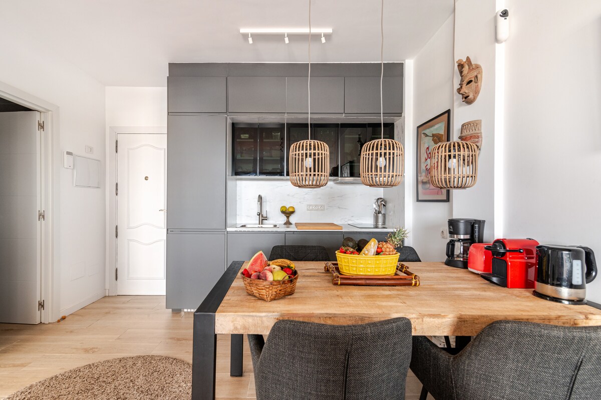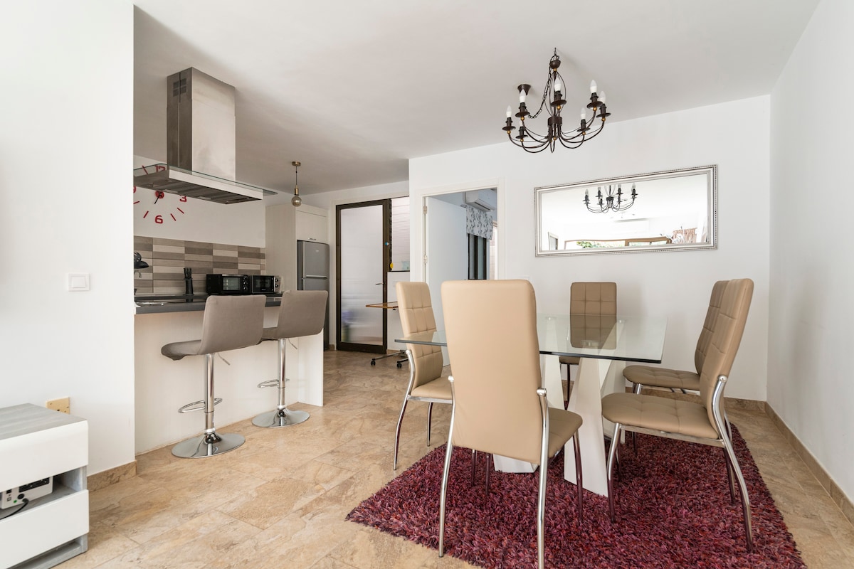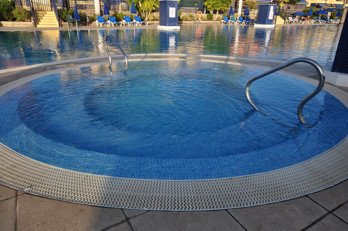 Vårt helrenoverade och helt nya hem har alla detaljer för att göra din vistelse till en perfekt vistelse. Vi har 2 cyklar, luftkonditionering, TV med mer än 300 kanaler, höghastighets WiFi, tvättmaskin, diskmaskin och små apparater som behövs. Maspalomas ligger i ett privilegierat läge där du kan njuta av avkopplingen av dess enorma stränder och samtidigt kunna besöka de bästa fritidsområdena på ön. Komplexet ligger nära till allt.