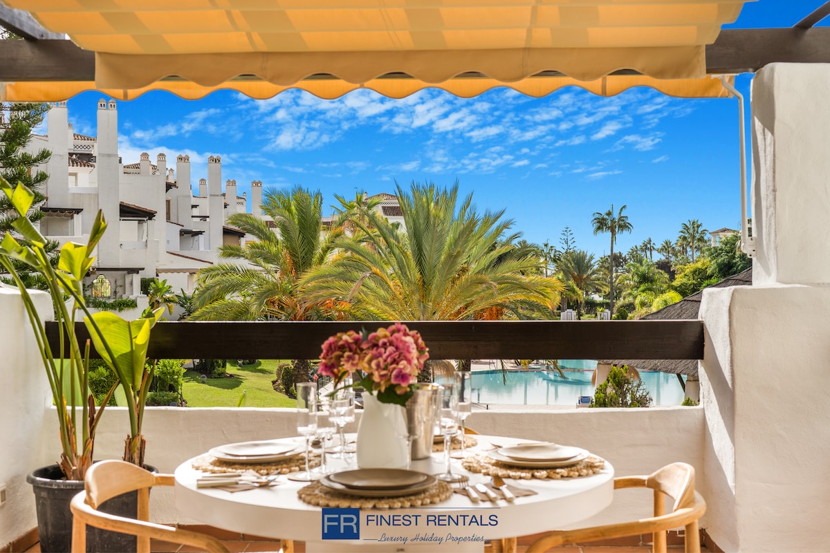 Cosy 2 bedroom ground floor apartment only 100 m from the promenade within walking distance of both Puerto Banus and San Pedro. The area named Castiglione is a quiet friendly "gated community" with stunning gardens! Walking distance to grocery store, restaurants, gym and padel courts. Perfect apartment for a family or two couples. The apartment is 90 square meters, 50 square meters back garden is very well planned with direct access out to the patio and pool area. USUARIO: H29681AAEC9