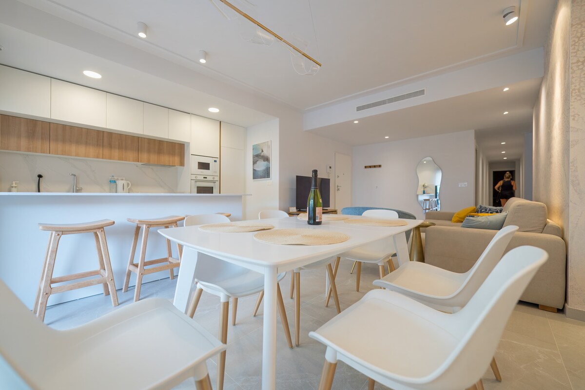 Denna eleganta, nyrenoverade lägenhet erbjuder oslagbar tillgång till stranden - bara gå utanför och du är på den gyllene sanden! Du kan bokstavligen promenera till stranden i din baddräkt. Inga bilar, ingen stress - bara vågornas ljud och solen på din hud. Börja dina morgnar med kaffe på den privata terrassen , njut av lunch på en av de härliga restaurangerna precis framför byggnaden och skölj av under utomhusduschen efter ett dopp. Detta är det perfekta stället att njuta av det bästa av livet vid stranden.
