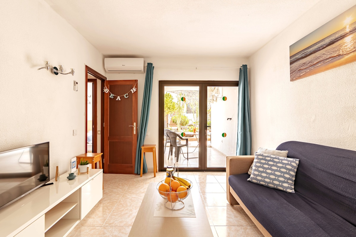 Mysigt boende med luftkonditionering på ETT UTMÄRKT LÄGE i ett ganska stort komplex med en stor UPPVÄRMD(!) pool. Centralt läge: 500 meter från stranden/Yumbo/Cita. Lugn enkelriktad gata med gratis parkering. Incheckning endast efter kl. 18:00! Rymlig balkong i syd/väst med loungesoffa och matbord "All Fresco" för 4 gäster. Amerikanskt fullt utrustat kök med grundläggande matlagningstillbehör, luftfryer och kaffehörna. Smart-TV med chromecast. Ljust och rymligt badrum. Två bekväma sovrum för 2 personer.