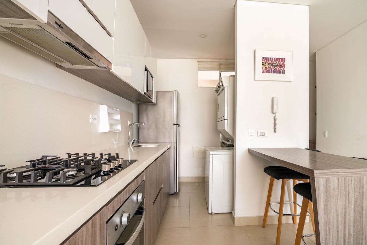 Stylish apartment sleeps up to 5 guests with a queen bed , sofa bed and Murphy bed. Just 300 m from the beach and 5 minutes by car from El Rodadero. Enjoy high‑speed Wi‑Fi, air conditioning in all spaces, Smart TVs, blackout curtains, and a fully equipped kitchen . 🍽️ Rooftop restaurant & bar in the building — food and drinks with a view 🚗 Assigned parking included 🛒 Minimarket on‑site for everyday essentials 🤝 Responsive host always available to help Book now and enjoy a relaxing stay!
