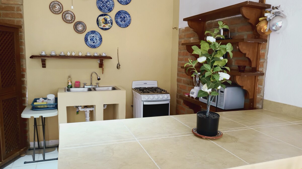 🏝️ Koppla av i Coastal Charm och känn dig som hemma! Välkommen till din charmiga Puerto Vallarta casita, bara 8 minuters promenad nerför till stranden och 20 minuters promenad till Zona Romántica längs den natursköna Malecón strandpromenaden. 🛏️ Efter en dags utforskning, sjunk ner i din KING-size säng och njut av blandningen av gammaldags mexikansk charm och moderna bekvämligheter. ☕ Du är bara 5 minuter från kaféer, restauranger, barer, en stormarknad och en färsk matmarknad — allt du behöver för en avslappnad lokal vistelse.