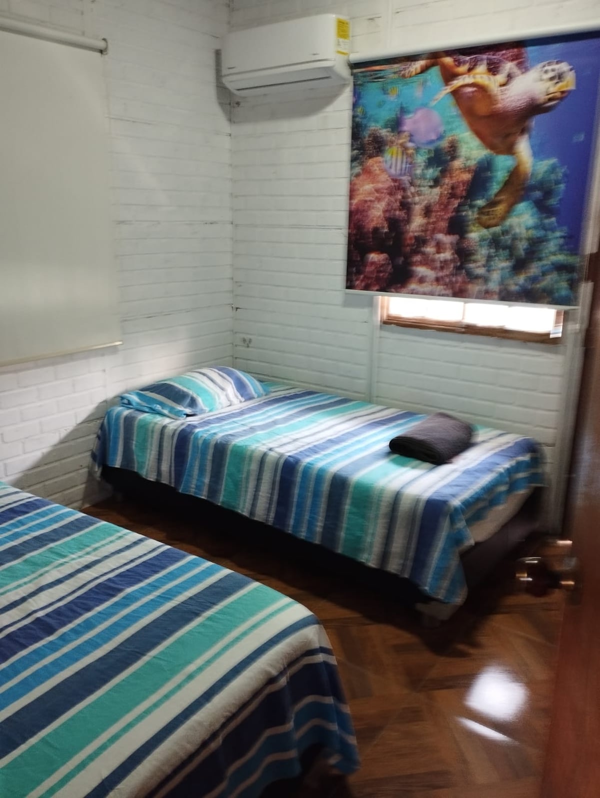 Studiolägenhet, sovrum plus köksrum som har badrum och dusch, garderob, en dubbelsäng 4 enkelsängar, 2 enkelsängar, luftkonditionering, kylskåp, spis, utrustade skåp, WiFi och kabel-TV. Helt oberoende, beläget i ett urbant område på Avenida 20 de Julio några kvarter från centrum och huvudstranden, i närheten hittar du stormarknader ,restauranger och snabbmat.