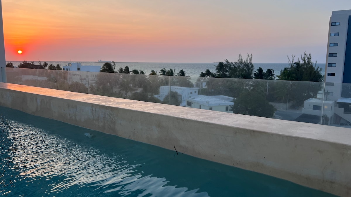 Precioso Departamento frente al mar, ideal para tomar un merecido descanso en el mejor lugar de Yucatan El departamento cuenta con cocina equipada, aire acondicionado en las 3 habitaciones + pequeño cuarto de servicio, tv, WI FI de alta velocidad 2 salas y 2 comedores así como cocina equipada con barra Vista espectacular El edificio cuenta con: Elevador Playa privada Acceso directo a la playa Piscina para niños Piscina para adultos Frente a la playa Camastros y regaderas