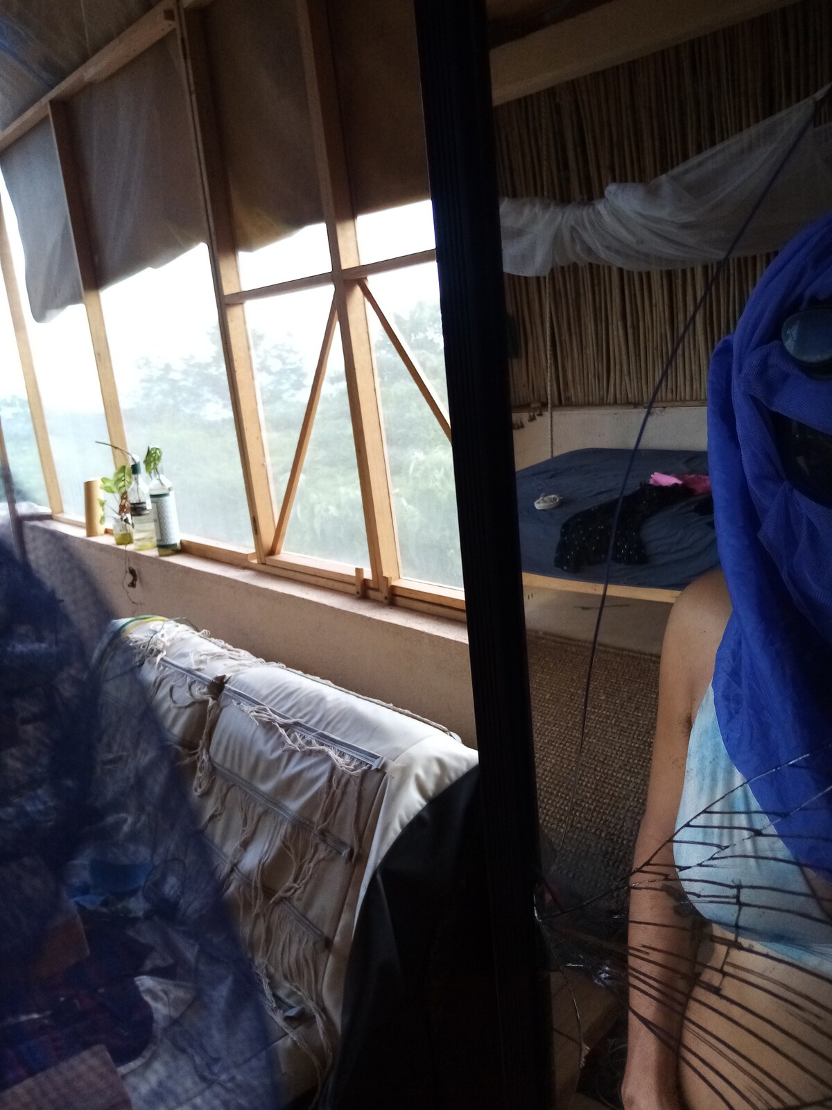Cabaña fresca de doble planta (apróx. 20 m2), estilo rustico y construida mayormente con madera. El primer piso, cuenta con una sala estar fresca y con un ventanal grande. La cocina es amplia, fresca, y tiene utensilios básicos. En la planta alta esta el cuarto principal y es muy acogedor. la cocina y la recámara cuentan con mosquiteros. La cabaña se encuentra a 10 minutos caminando a la playa del Amor.