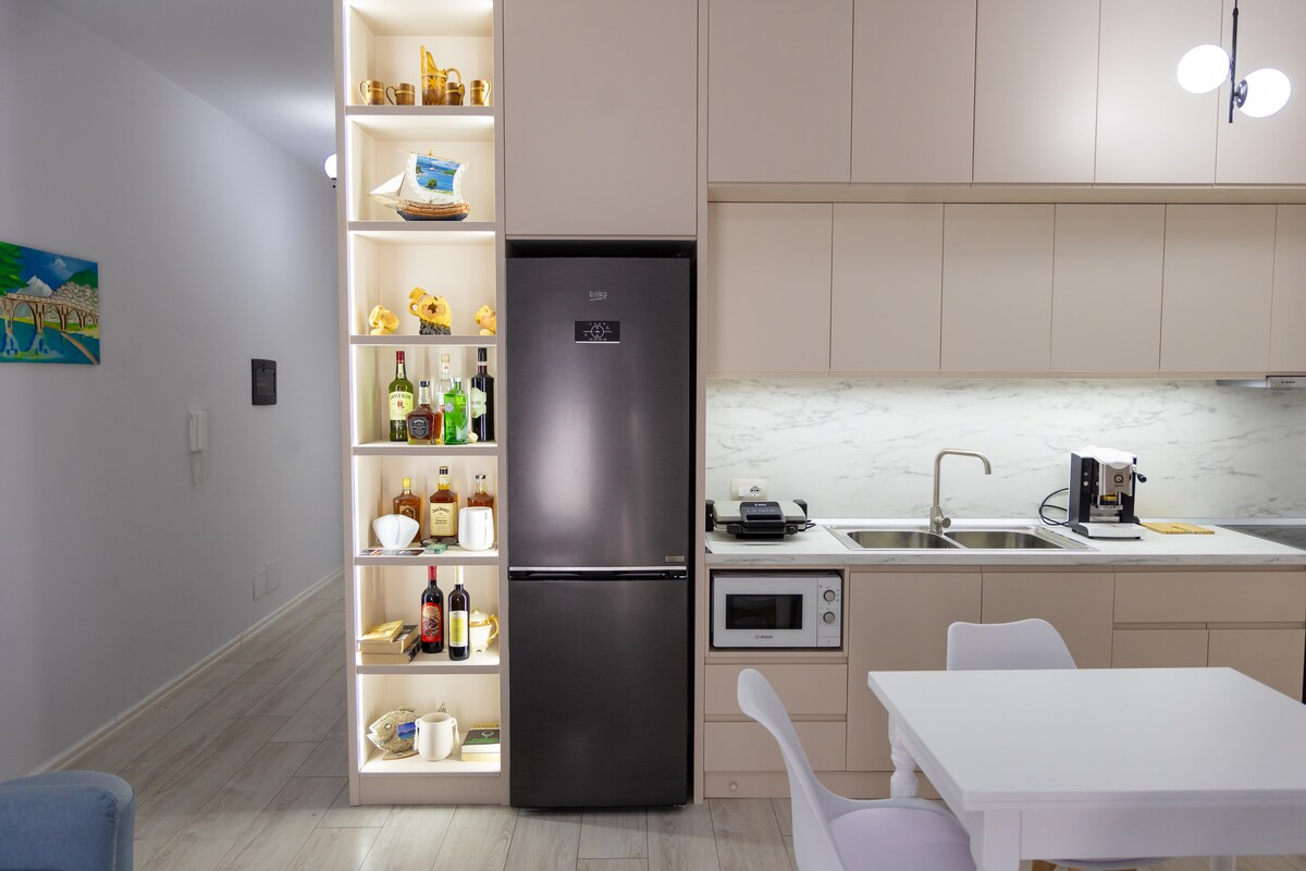 Denna vackra lägenhet är det perfekta stället för alla gäster som vill spendera sin upplevelse nära stranden och promenaden med palmer i staden Vlora. Beläget 30 meter från havet har du möjlighet att njuta av de vackra stränderna, ta en promenad längs havskusten och njuta av den fantastiska solnedgången från din balkong. Bar och restauranger är ett steg bort för att njuta av bra musik och god mat.