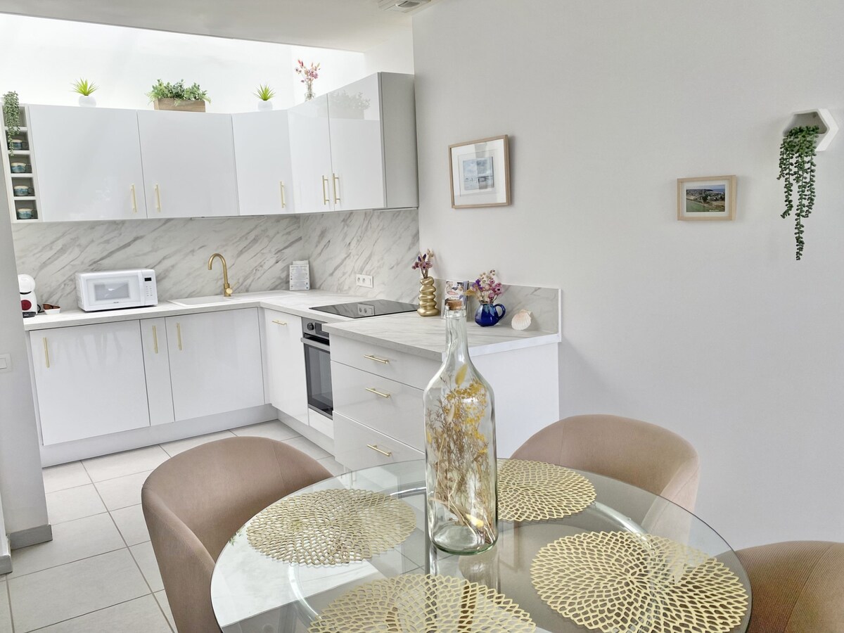 Vacker fullt utrustad lägenhet, 41 m2 med terrass på 15 m2 utan insyn, belägen i en lugn återvändsgränd. Består av ett vardagsrum med en bäddsoffa för två personer, ett sovrum med en säng 140 x 190, och ett badrum med dusch. Alla butiker i närheten (apotek, bageri, slaktare, stormarknad, fiskhandlare, bio ...). 5 minuters bilresa från stränder, GR, vattenaktiviteter. Boendet är tillgängligt utan trappor, parkering, tvättmaskin, wifi, diskmaskin.