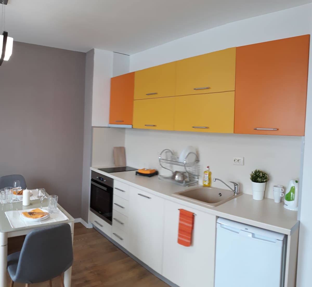 Det har ett sovrum och ett vardagsrum med ett fullt utrustat kök och en bäddsoffa, luftkonditionering och plasma-TV ,WIFI,med digital-TV. Köket är utrustat med en absorberare, inbyggd spis, kokplattor, kylskåp, tvättmaskin, kaffebryggare, mikrovågsugn. Lämplig för boende i en familj med 2 barn eller 2 familjer.Lägenheten är stilfullt och lyxigt inredd med rymligt badrum och terrass med utsikt . Det finns parkering tillgänglig.