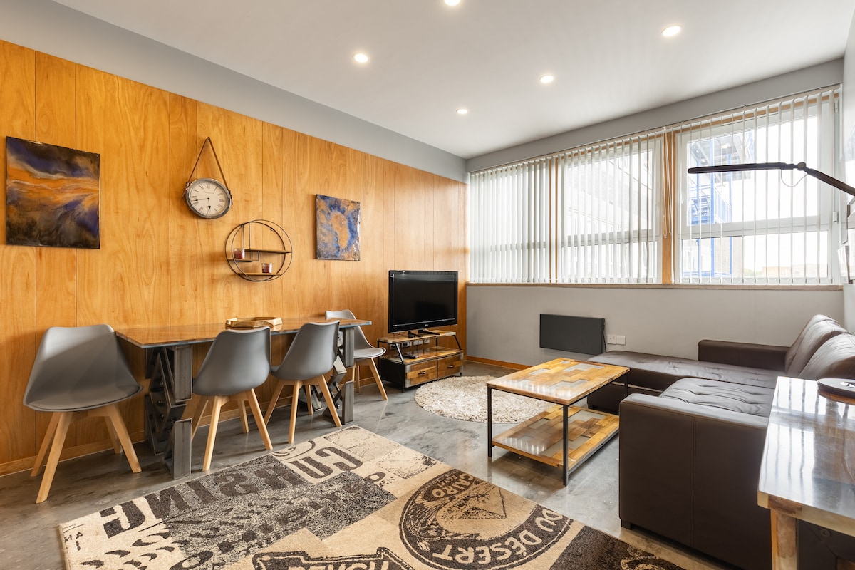 Njut av ett modernt vardagsrum 🏡 med öppen planlösning och en elegant lounge 🛋️ (inklusive en bäddsoffa🛏️), bekväma 🛏️🛏️super kingsängar och ett fullt utrustat kök med 🍽️ tvättmaskin🧺, diskmaskin 🚿och kaffestation☕. 🗝️ Rymmer 5 gäster 🗝️ Sovrum 1 – 1 x Super King 🛏️ 🗝️ Sovrum 2 – 1 x Super King 🛏️ 🗝️ Vardagsrum - 1 x bäddsoffa 🛏️ 🗝️ Wifi 500 mb 📶 🗝️ Gratis parkering 🚗 🗝️ Smart-TV (Netflix) 🎬 Perfekt för: ➞ Företagsvistelser 💼 ➞ Entreprenörer 🛠️ ➞ Familjer ➞ Vänner 🎉 ➞ Studenter 🎓