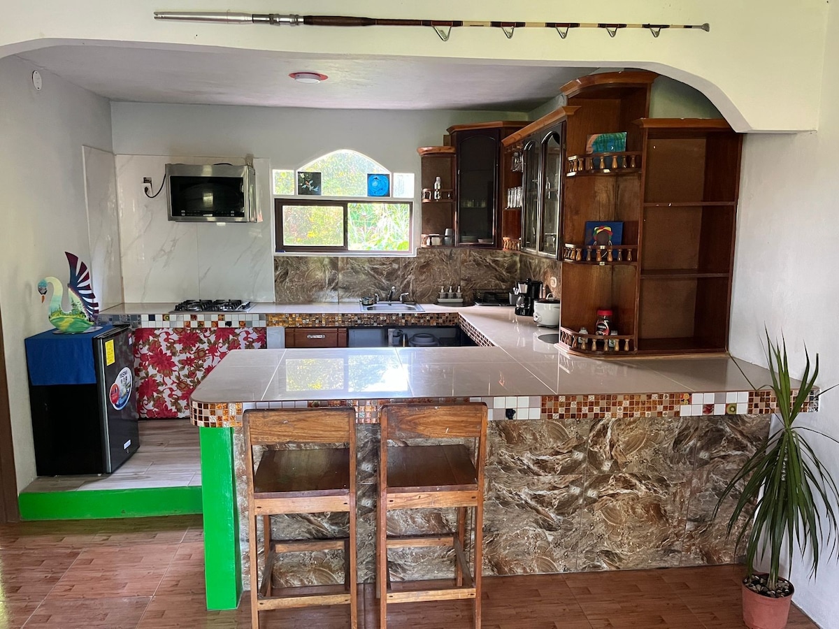 Detta boende har 2 lägenheter, på bottenvåningen bor ägarna, vilket gör det säkrare för dig och på andra våningen är hyreslägenheten fullt utrustad för dig. Kom och vila på stranden och njut av kanalerna i Tortuguero National Park, gå för en kajak, kanot eller de otaliga turerna du kan ta för att vara i direkt kontakt med natur och äventyr eller bara turnera en by full av karibisk glädje och traditioner.