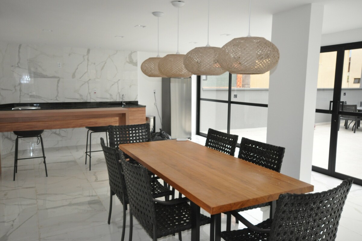 Tack för att du överväger vår lägenhet för din vistelse! Här får du all komfort och renlighet på ett privilegierat läge i centrum av Poços de Caldas. Lägenheten är ny, har höghastighetsinternet, dubbelsäng och en bäddsoffa, så den rymmer upp till fyra vuxna. På begäran har vi också en spjälsäng och barnstol tillgänglig. Byggnaden har en biograf, tvättstuga, gourmetområde, gym och en täckt parkeringsplats per lägenhet! Vi kommer att göra din vistelse till en unik upplevelse!
