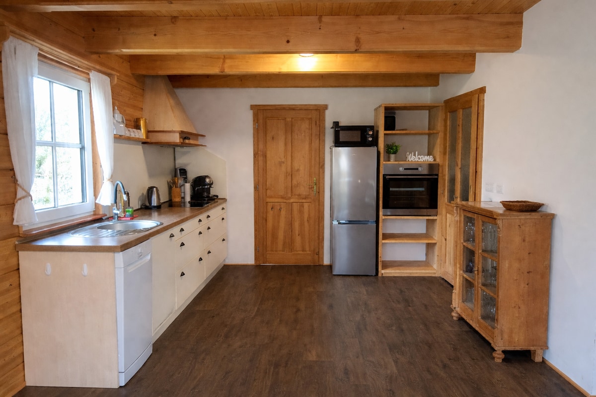 Vi erbjuder boende i ett nybyggt timmerhus, beläget i den pittoreska byn Háj. Vi har många faciliteter redo för familjer med barn (såsom lekrum för barn, rutschkana, leksaker, studsmatta, lekplats). Vi välkomnar familjer eller grupper av vänner som kan lära känna den vackra omgivande naturen och skogarna.