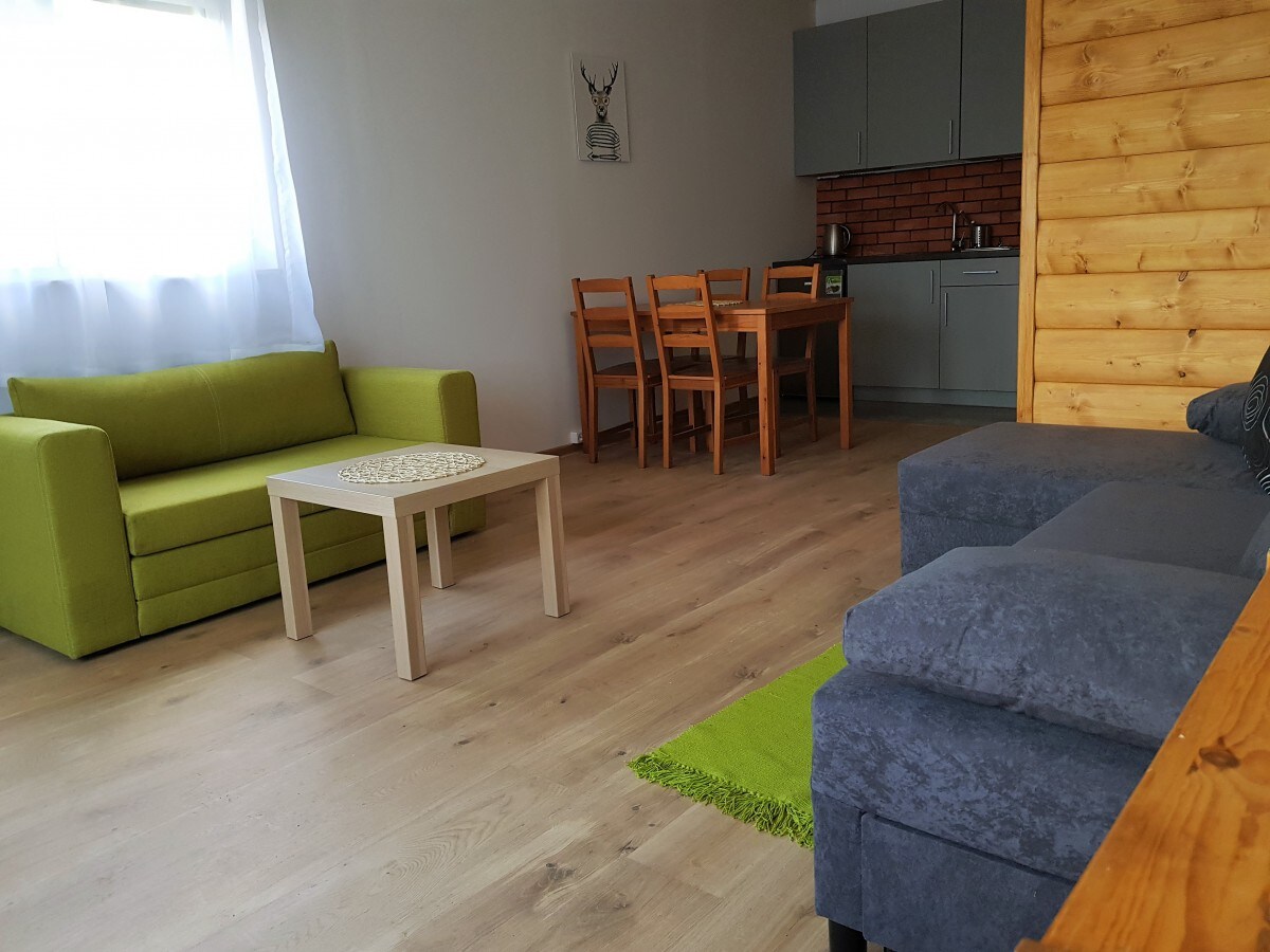 Fembäddslägenhet, fullt utrustat pentry, bäddsoffa,sovrum; en enkelsäng, en dubbelsäng, korridor, stort badrum. Möbler och sängar gjorda av björk, intressant litteratur, barnhörna, mycket mysig lägenhet inredd i Bieszczady klimat. Läget för lägenheten är en bra utgångspunkt för vandringar till de högre delarna av bergen, avstånd från Solinskij Lagunen - 15 km. I närheten finns en året runt simbassäng, lekplats, tennisbana.