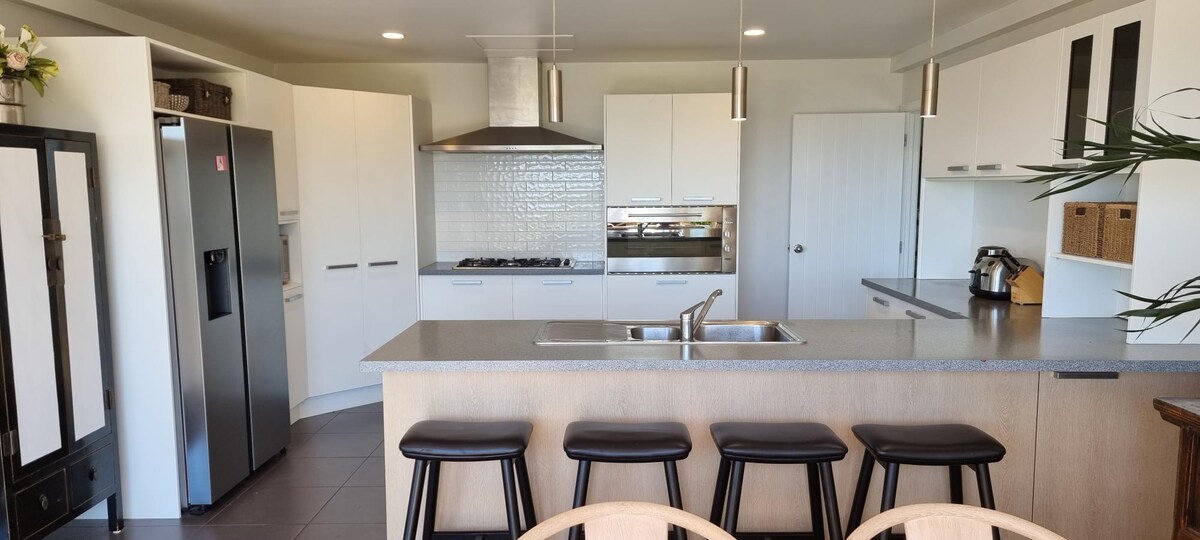 Modern arkitektonisk kiwi bach inbÀddad i utkanten av en tidvattenlagun mellan Ligar Bay och Tata Beach. Bach Àr en kompakt 55 kvm med ett stort skyddat och tÀckt dÀck med hela dagen sol. Ett stort sovrum ansluter till en kompakt lounge och eget badrum, matplats och kök frÄn bÄda sidor med full utsikt över vattnet och lagunen. Det finns en separat sovplats med en Queen size-sÀng 2 meter frÄn huvudbostaden för ytterligare 2 gÀster. Fantastisk andra varma utomhusdusch under trÀden.