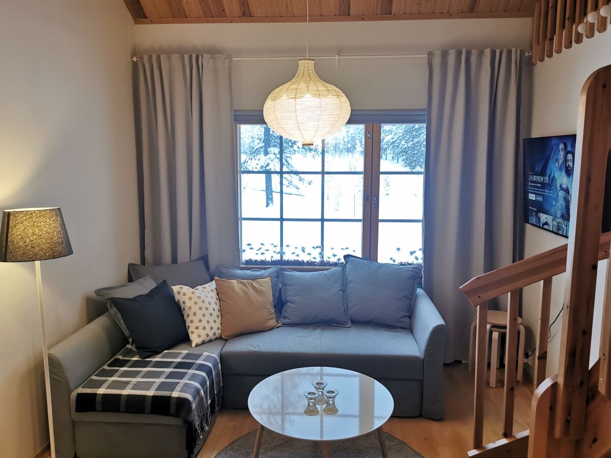 En liten, välutrustad stuga ca. 3 km från Kittilä centrum. Cirka 29 kvadratmeter. Beläget på gården i vårt hem, men du kan fortfarande njuta av din egen integritet. I priset ingår elbilsladdning från laddningsenhet av typ 2 max 11kw, du behöver din egen laddningskabel. Välutrustat kök. Matplats för fyra, kaffebryggare, vattenkokare, brödrost och mikrovågsugn. Det finns också en bäddsoffa för en vuxen.