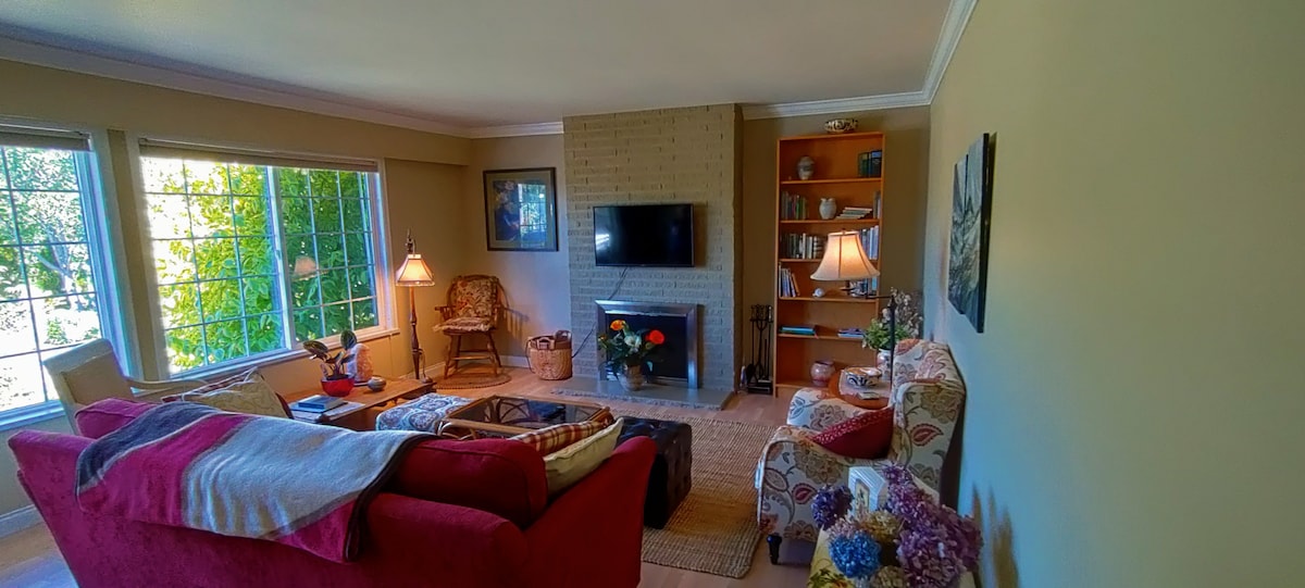 Ny, ljus svit pÄ huvudplan med separat ingÄng och privat uteplats. Njut av vÄrt lugna grannskap, omgivet av parker och bara 1 km promenad till stranden. BekvÀmt belÀget med 5 minuters bilresa till fÀrjan, gallerian, vattenparken, golfbanor och restauranger, 30 minuter till flygplatsen och 40 minuter till centrala Vancouver. Sviten Àr mysig, med tvÄ queen-sÀngar och en utfÀllbar soffa. Vi bor i huvudbyggnaden som Àr ansluten men ganska separat och finns tillgÀngliga om du behöver nÄgot.