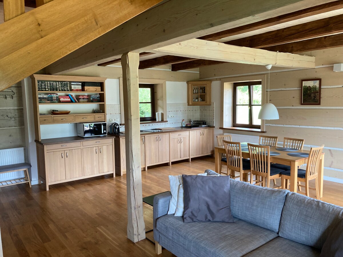 Comfortable cottage opened in June 2021, located in a charming, quiet place, surrounded by a forest. There is a large garden with two ponds at the private disposal of guests. A garden grill/ fireplace are available. Distance to the nearest buildings is ap.100 m. WHAT MAKES US SPECIAL? One house on a large plot, lovely quiet place, no close neighbors, hot tube, high-quality furniture /equipment. If you don't like relaxing in the crowd - our house is just for you!
