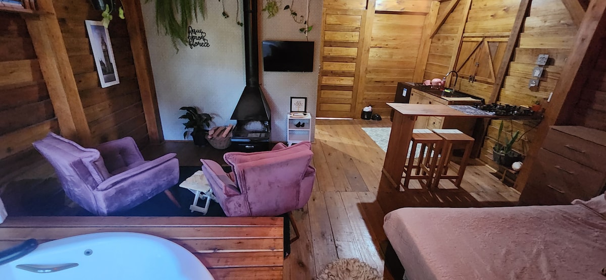Um refúgio acolhedor, feito com carinho para quem deseja viver momentos especiais. Aqui, o tempo desacelera e os sentidos se despertam. Ideal para casais que buscam uma escapada romântica, ou famílias com um filho ou Pet, a nossa cabana une conforto, charme e a natureza de Pomerode. O que você vai encontrar por aqui: Cozinha, varanda com churrasqueira, banheira, lareira, jardim grande com horta e pomar, cesta com itens para café no check-in. Queremos que aqui você se sinta em casa!
