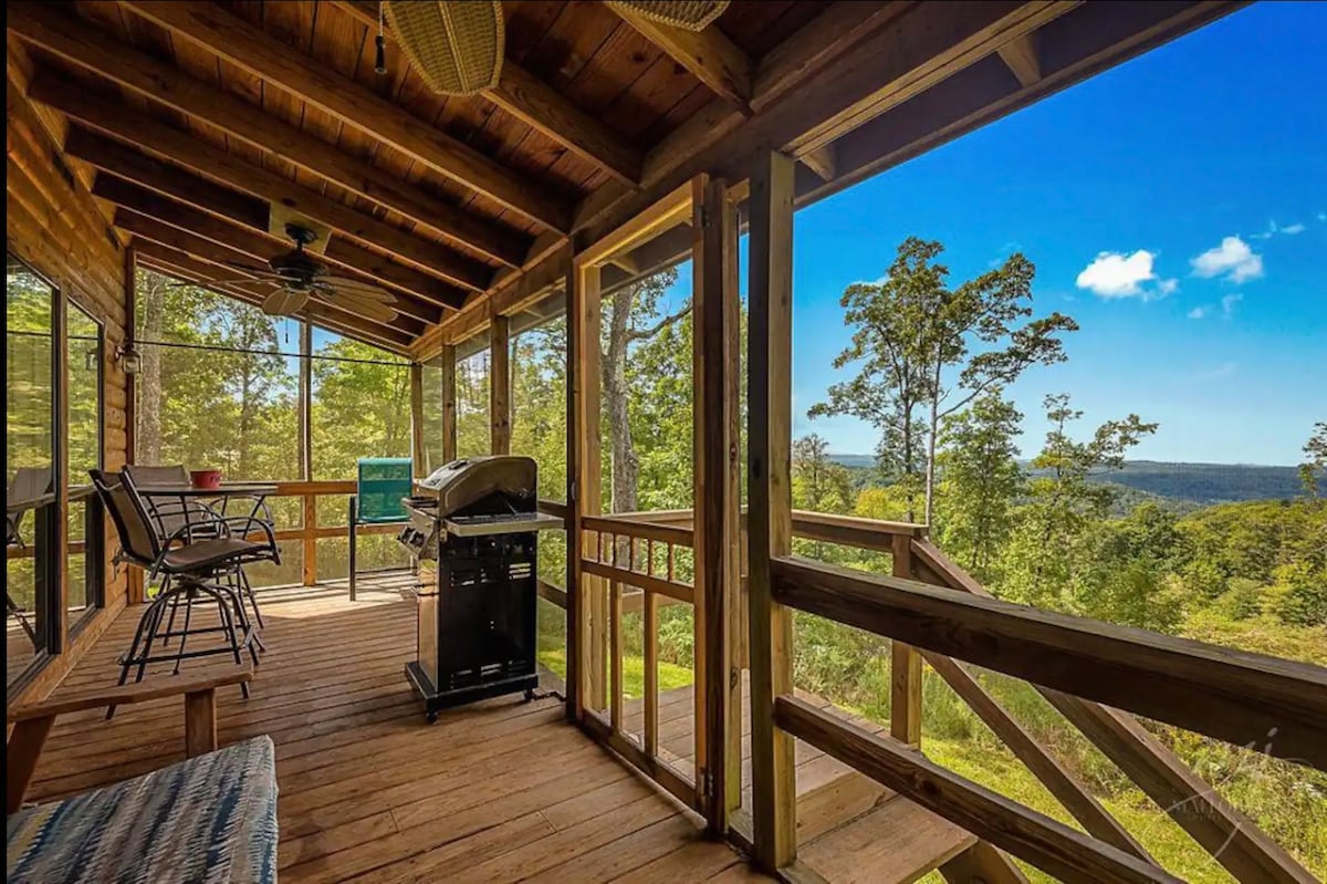 A Still Point Cabin is the perfect retreat. With a beautiful view of the Ozark mountains from your screened deck you can easily escape into nature. Cozy and efficient space makes this cabin the perfect setting for your getaway with friends and family. With a queen bed upstairs, a queen memory foam pull-out couch, and a queen size Cordaroy convertible bag-chair (only big enough for two small children) there is plenty of room for everyone. Newly installed hot tub too!