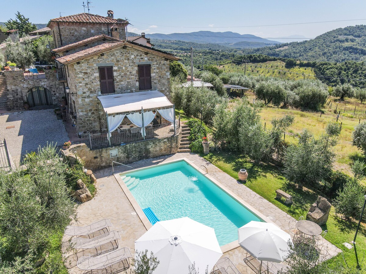 Landsbygdshuset är byggt med gammal sten som kommer lokalt i Umbrien och erbjuder en hisnande utsikt över den omgivande dalen. Huset omfattar ett rymligt vardagsrum med två antika eldstäder, två kök, ett rekreationsrum, fem sovrum och fyra badrum. Utanför finns en stor pool, matplats, ett lekhus för barn, flera parkeringsalternativ och ett 2-bils helt slutet garage. Det finns också en grillplats och en vedeldad ugn om du vill laga mat utomhus.