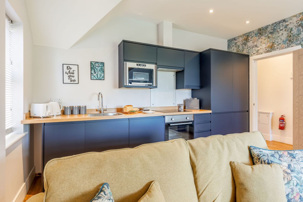Koppla av och varva ner i denna ljusa, luftiga lägenhet med havsutsikt över bukten. Beläget 5 minuters promenad från piren i en prestigefylld listad viktoriansk byggnad som nås via hiss eller trappa med privat tilldelad off road parkering. Gratis användning av tvåvånings gym och poolbord, anlagda trädgårdar och stor terrass Vardagsrum/matsal — soffa och bäddsoffa, matbord och stolar, platt-TV och wifi-tillgång Köket är fullt utrustat med kaffebryggare, mikrovågsugn, tvättmaskin Alla sängkläder och handdukar tillhandahålls