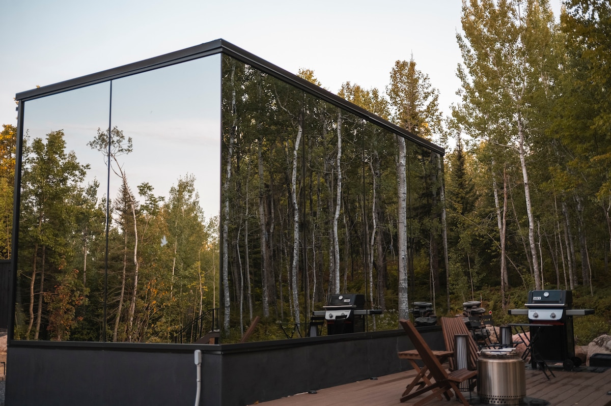 5 av 5 i genomsnittligt betyg, 3 omdömenMirror Cabin - Privat bastu, eldstad, grill - Aura