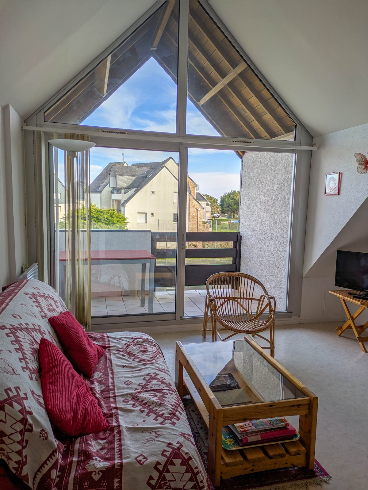 La Vigie du port. Charmant studio vue imprenable sur Port Haliguen. Il se trouve au 3ème étage d'une petite résidence de 4 appartements à 30 mètres de la plage. Vous n'aurez qu'à traverser la route pour mettre les pieds dans l'eau. Une petite loggia au Rdc est aussi à votre disposition pour ranger les affaires de plage. On y laisse quelques jouets pour les enfants. Possibilité de mettre à disposition des draps et serviettes moyennant supplement . le ménage est à votre charge