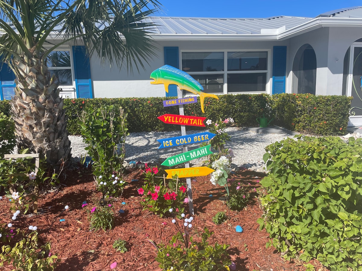Fly till ett fiskarparadis i pittoreska Matlacha. Detta charmiga semesterboende erbjuder en mysig tillflyktsort för gäster. Med 2 sovrum, inklusive en dubbelsäng och 2 enkelsängar, är det perfekt för en liten grupp eller familj. Det extra vardagsrummet har en bekväm bäddsoffa. Njut av tillförlitligt WiFi, och bekvämligheten med våra bekvämligheter...vatten och brygga tillgång till våra kajaker eller din vattenfarkost, lokala restauranger och butiker mindre än 5 min. promenad in till staden tillsammans med en båtramp vid vår kommun. park