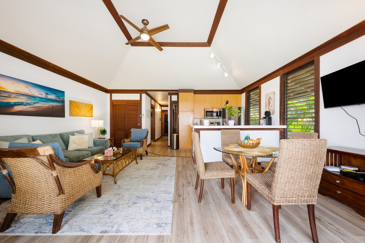 I hjärtat av Poipu ligger en mysig villa med 1 sovrum, centralt belägen till allt i Poipu Beach. Kliv in i ditt hem-away-from-home och välkomnas av ett fullt utrustat kök, komplett med spis, ugn, kylskåp, grill(i de gemensamma utrymmena) och alla apparater du behöver för att piska upp läckra måltider. Njut av al fresco på lanai, omgiven av frodig grönska och naturens lugnande ljud. Luftkonditionering i sovrummet från och med januari 2025. *Jeep Grand Cherokee tillgänglig mot avgift