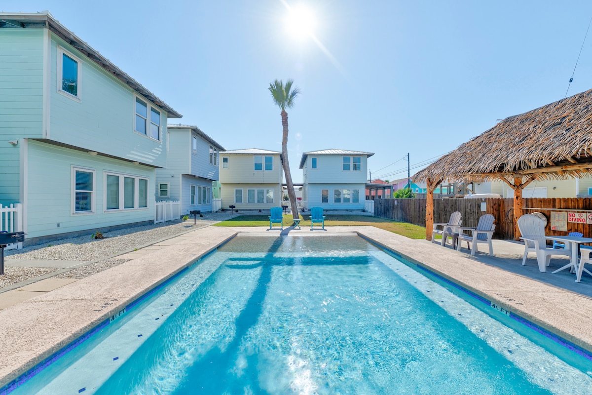 Kom och skapa minnen i denna unika, vänliga oas! Denna tillflyktsort lovar en lyxig strandsemester! Exklusivt boende, detta är helt enkelt det finaste huset i Port Aransas. ~Gratis golfbil ~Mycket nära stranden ~Privat uppvärmd pool (50 dollar per dag extra kostnad för uppvärmning av pool) ~Eldstad med trä och s'mores ingår (november till april) ~Beläget i den lugna delen av staden ~Gångavstånd till alla restauranger ~ Stor utomhus-TV med Sonos Soundbar ~Grässpel (Cornhole, Minigolf) ~Nyckellös ingång
