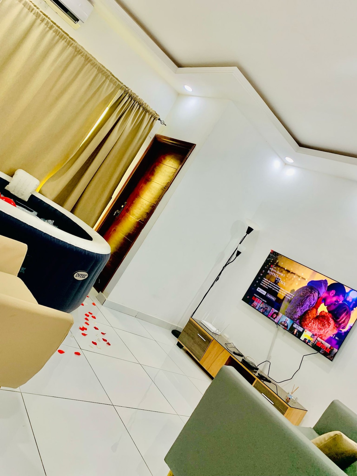 Abidjan Marcory / Bietry, rue des Majorettes , appartement meublé de 2 pièces disponible au rez-de-chaussée d’un r+1 avec Spa jacuzzi privatif et coin massage est un appartement récemment rénové avec un jardin privatif , un Barbecue electrique L’appartement est situé dans un endroit très agréable calme et sécurisé avec un facile accès et à côté de toutes commodités comme restaurant, guichet automatique, pharmacie, supermarché etc… et à 5min de l’aéroport. Nb: massage offert à partir de 5 nuitées