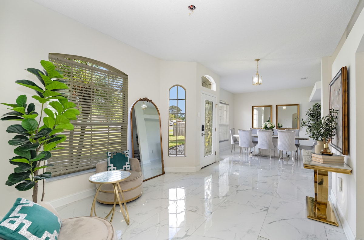 Unwind in this intercoastal waterfront paradise with breathtaking sunrise views over the Banana River. Spot turtles, dolphins & manatees from your private dock. Retreat into elegance with an upscale split floor plan coastal home with private pool. Mins from Cocoa Beach, Port Canaveral & Kennedy Space Center. Disney & Orlando are 40 mins away. 🐠🚣♂️ We provide kayaks, fishing poles, beach chairs & pool toys! Send us a message about the ultimate getaway with your own private pool & dock