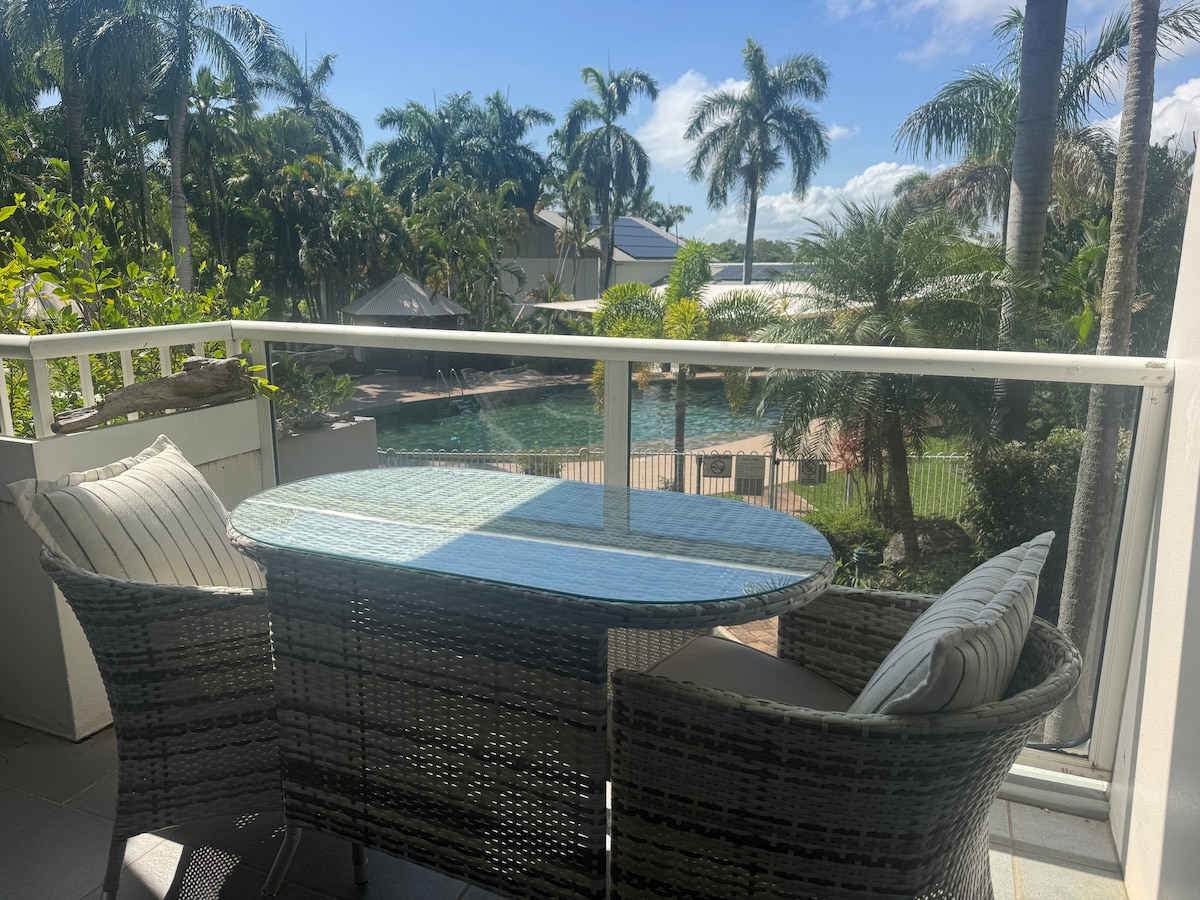 🌴Welcome to The Green Place, a peaceful 2-bedroom retreat with a private balcony overlooking the botanical gardens’ treetop canopy. Set within a tropical resort complex, this spacious apartment feels private, calm and made for slowing down. 🏡Enjoy free Wi-Fi, air-con, 4 pools, tennis court, workout space, full kitchen, laundry and undercover parking. Flexible bedding available: 🛏️ Bedroom: 1 king or 2 singles 🛏️ Second bedroom: 1 king