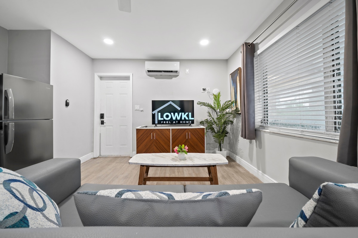 Welcome to Villa Blanca, a bright and airy studio offering plush furniture and high-quality amenities. Meticulously designed with wood floors, stylish finishes, and pops of color, this hidden gem could be yours. Top 5% home. ♥ Washer & Dryer ♥ 15 mins to FLL airport, Port Everglades, Hard Rock Casino and Chase Stadium ♥ 10 mins to downtown/restaurants/beach ♥ Private entrance & self check-in ♥ Free off-street parking ♥ WFH ready ♥ Beach chairs & towels
