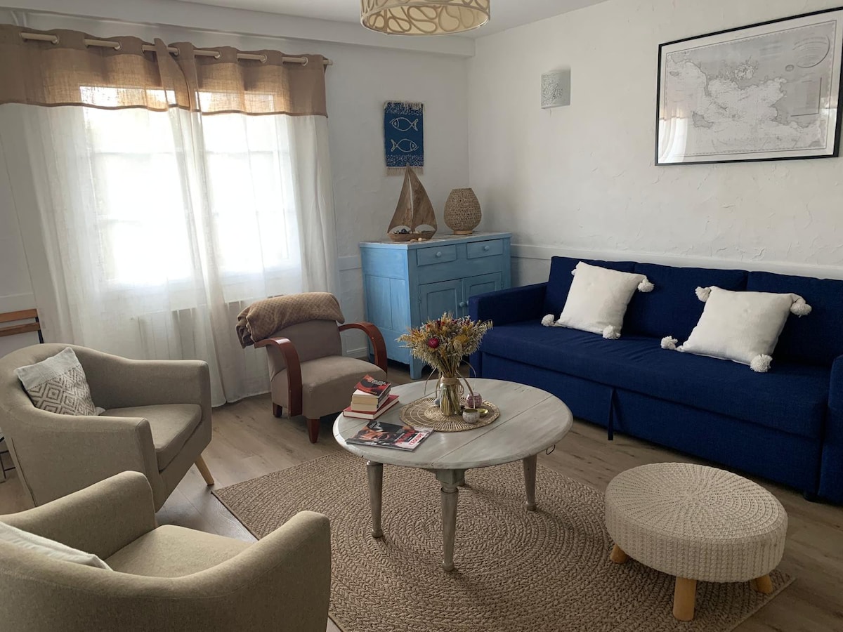 Mycket stor, rymlig och ljus lägenhet nyligen renoverad och inredd (130 m2) för 4 personer, full havsutsikt, full fot, mot söderläge den stora stranden, nära butiker (bageri, snabbköp, biograf, cykeluthyrning) Terrass(90 m2) möblerad med solstolar,solbad och trädgårdsmöbler, Stort vardagsrum med tillgång till terrass, 2 sovrum inklusive 1 havsutsikt, utrustat kök,badrum med dusch, separat toalett, tvättstuga,omklädningsrum Egen ingång Parkeringsplats När på cykel