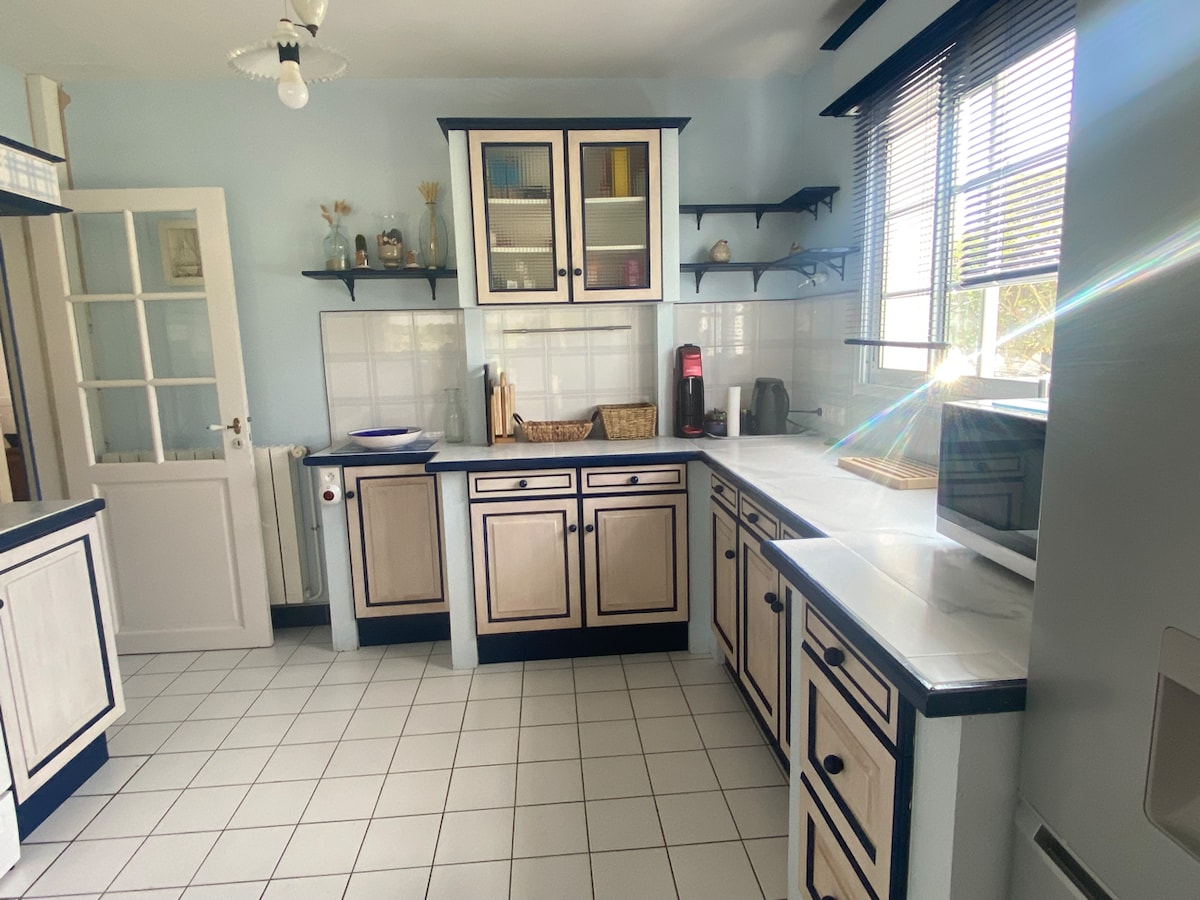 Vår- och sommarsemester, bokning från lördag till lördag. Semesterhus på 3 nivåer, renoverat och förstorat med största omsorg, kombinerar charmen av det gamla och komforten av det moderna, utrustat som ett huvudhus, ligger nära alla butiker och 500 meter från den stora stranden och 700 m från piren för öarna (Belle Île, Houat och Hoëdic) *Sängar bäddade vid ankomst och sängkläder"
