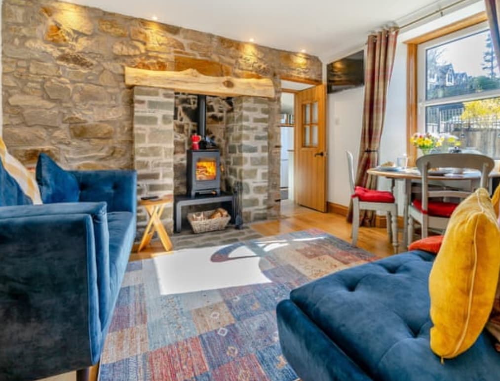 Lugn, tyst, husdjursvänlig timmerstuga med inhägnad trädgård. Perfekt för par eller de som söker en fridfull tillflyktsort. Utomhus sittgrupp. Med skogsmark promenader och djurliv precis utanför dörren En 10 minuters promenad från den livliga stadens centrum många restauranger, barer, caféer och butiker. Stugan är försedd med allt du bör behöva. Insluten trädgård med uteservering, eldstad och grillplats. Välutrustat kök. Vardagsrum med 50" smart-TV, böcker och spel. Bekväm dubbelsäng och duschrum