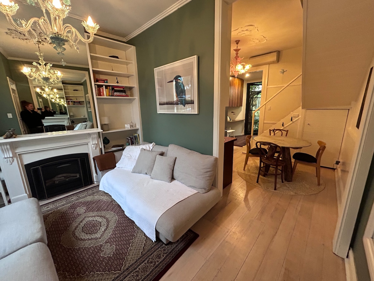 Denna 100 år gamla arbetarstuga handlar om skräddarsydda interiörer Väggarna och hyllorna fyllda med vackra konstverk, hemmet har specialinköpta vintageplagg utspridda överallt, sängarna är fyllda med lyxiga sängkläder och loungen har en 3-sitsig soffa du kanske aldrig vill gå upp från. Centralt beläget, mitt emot South Melbourne Markets, gångavstånd till Albert Park Lake och en snabb spårvagnsresa till CBD. Observera — ingen TV, så ta med enheter vid behov.