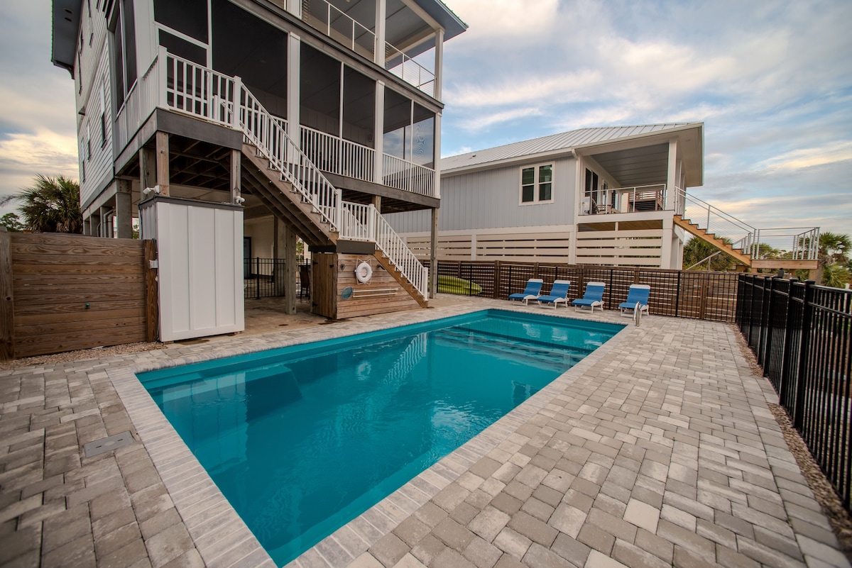 ⭐️Lyxigt strandboende med 4 sovrum 12 ⭐️ sovplatser i Windmark Beach ⭐️ Uppvärmd pool 1-30 april Golfvagn med⭐️ 6 platser ⭐️ Några steg till stranden ⭐️Djurvänligt Du kommer att vara bara några steg från den lyxiga gemensamma poolen där du kan koppla av med utsikt över bukten. Du kan promenera till stranden på några minuter från boendet för att bada i golfens varma vatten eller koppla av i solen. Ta en tur med golfvagnen till det närliggande Village Center för att äta något. Avsluta dagen med att koppla av på de avskärmade verandorna eller vid eldgropen utomhus.