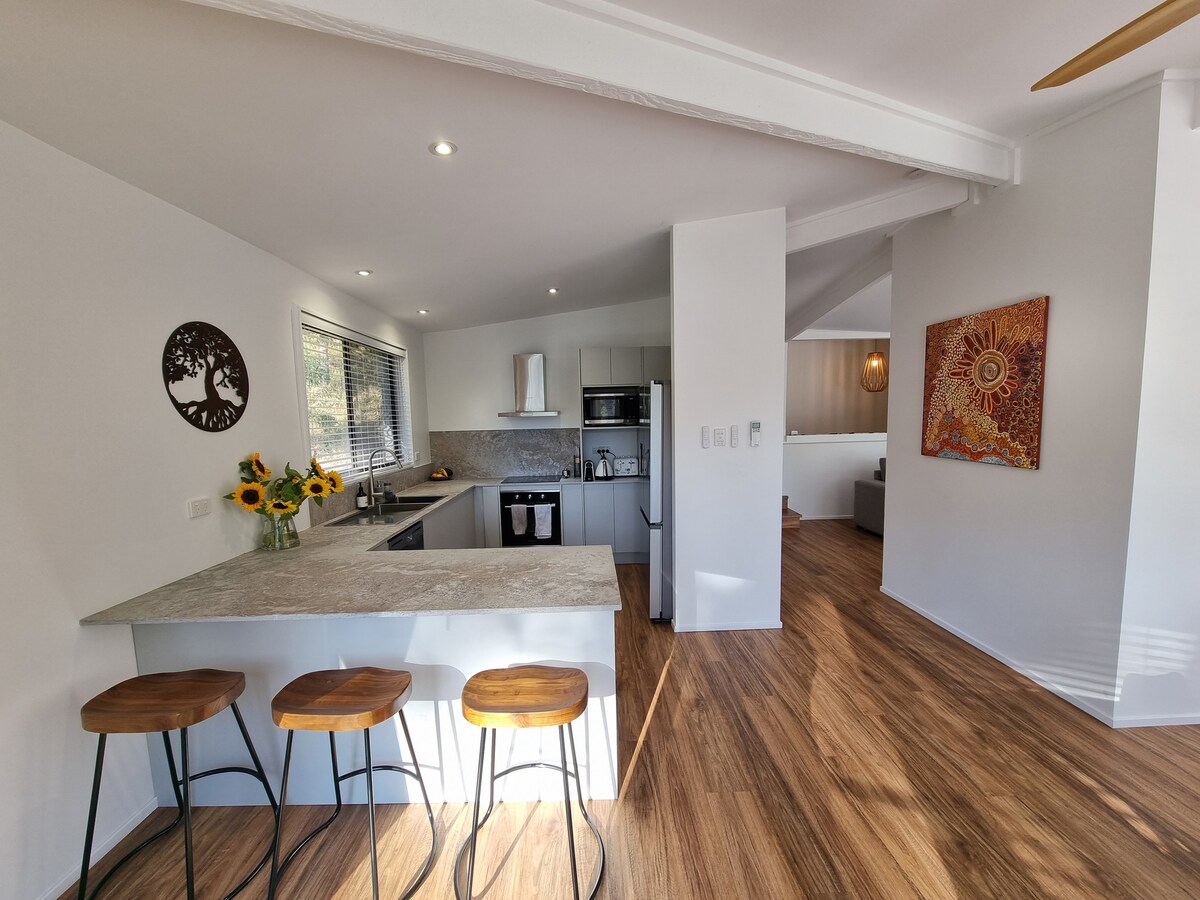 Koppla av med familjen i denna rymliga, moderna tillflyktsort med två sovrum på en lugn, trädfylld egendom. Koppla av i det ljusfyllda vardagsrummet eller njut av fågelsång från pergolan. Utforska stränderna i Port Stephens eller Newcastle, spela en runda golf eller prova Hunter Valleys vin och mat i världsklass mindre än en timmes bilresa bort. Boendet har ett fullt utrustat kök, tvättstuga, Wi-Fi och gott om utrymme att sträcka ut sig, perfekt för familjer, par eller vänner som vill ha en avslappnad flykt.