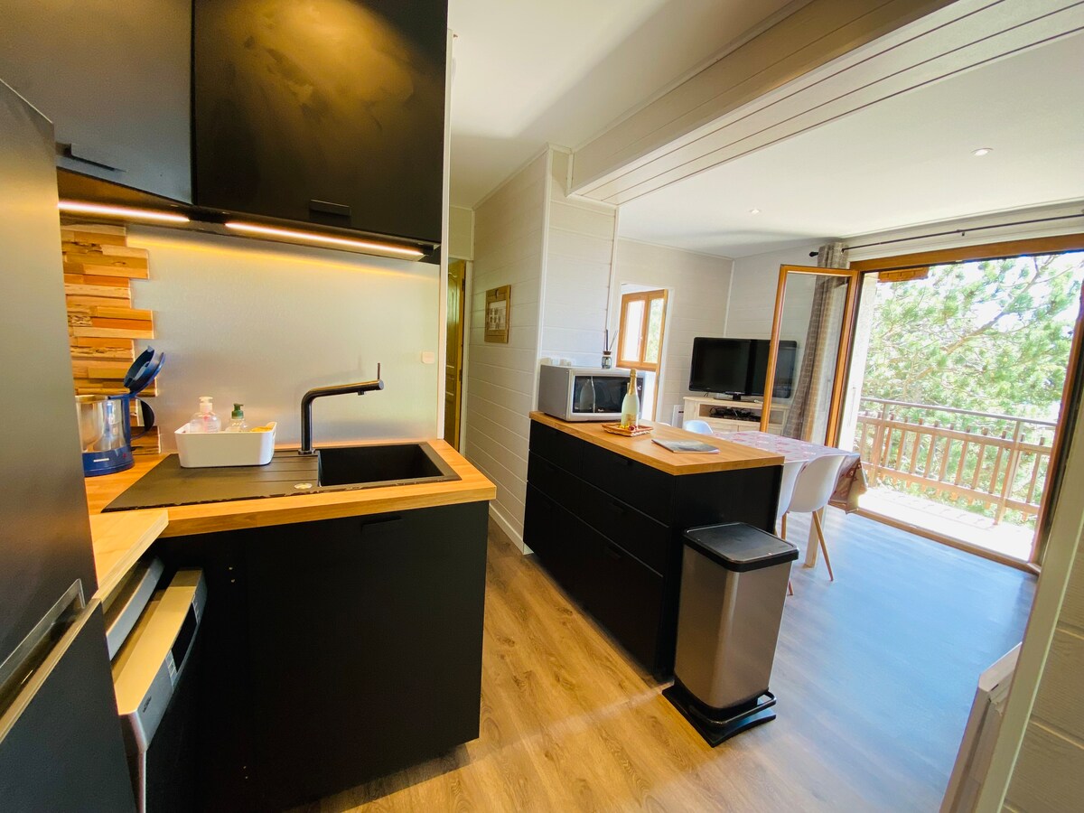 Bas de chalet d’une superficie de 35m2, d’une capacité de 4 personnes maximum, paisible, qui permet à toute la famille de profiter des joies de la montagne, de skier, de randonner, de se baigner, de découvrir la faune et la flore des Angles... L’appartement est dans une impasse au calme, pour le plus grand bonheur des biches, cerfs, écureuils….