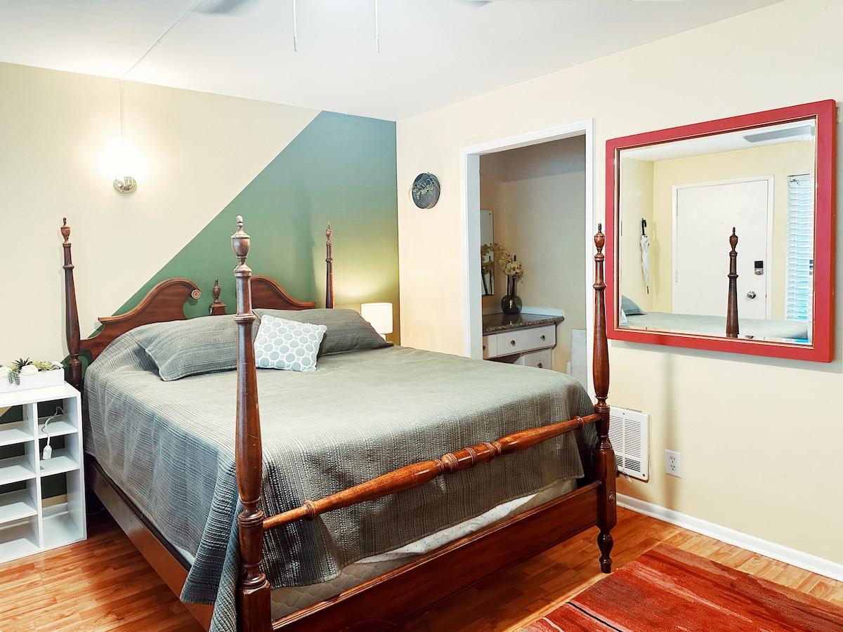 Njut av det eklektiska grannskapet Fremont i Seattle medan du bor i min privata gästsvit! Detta utrymme har allt du behöver för att ladda om och koppla av. Observera: det finns inget fullt utrustat kök, bara ett pentry (mikrovågsugn, minikylskåp, vattenkokare, tallrikar/bestick). Till dem som är känsliga för buller: detta är en svärmorsenhet i ett hem (andra bor i byggnaden) och det är ett hektiskt område i Seattle — du kan förvänta dig att höra trafik, byggverksamhet och fotgängare.