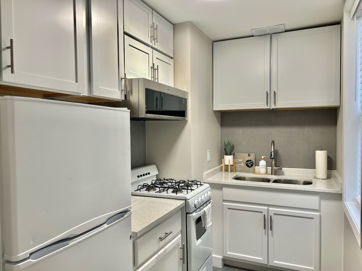 Valvade takfönster släpper in naturligt ljus. King size säng. Soffan öppnas till en säng i full storlek. (Djuprengöring enligt AirBnb COVID-19 desinfektionsstandarder) Fullt utrustat kök, litet badrum med dusch. Parkering framför huset, 1,5 M från Lake Michigan Shoreline, 2 kvarter till 15th St. ingång till Prairie-Dune Trail. Europeiska marknaden (maj - okt) varje lördag i centrum. Höstsäsongen kör längs U.S. HW 12 & 20 för löv Vinter dag vandringar, x-län skidor spår, shoppingresor till Michigan City Outlet köpcentret.