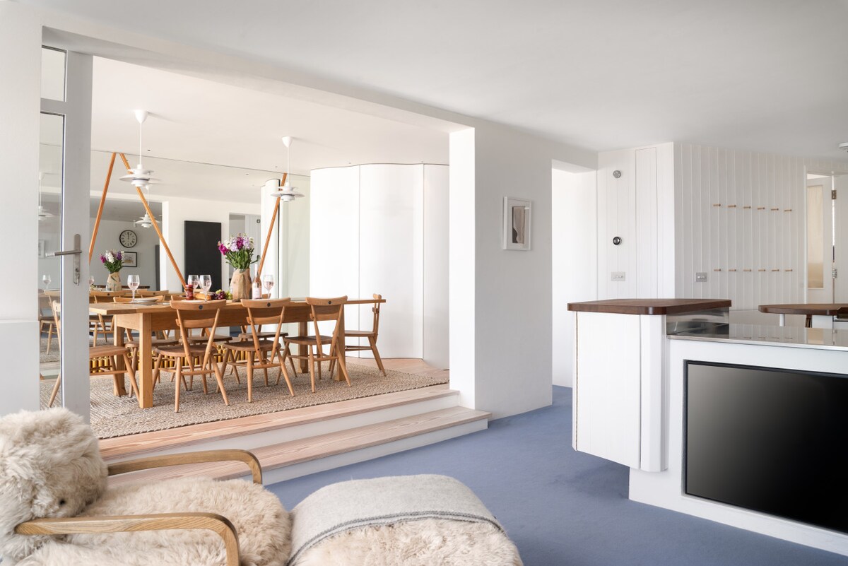 Vackert viktorianskt hus med fantastisk utsikt, 2 minuters promenad till hamn och stränder. Privat parkering framför huset och elbilsladdare. Making Waves har en rymlig interiör och solig uteplats. Originalfunktioner/handgjorda möbler ger verklig karaktär. Beläget på en lugn privat väg utan genomgående trafik ovanför tropiska trädgårdar/Hepworth Museum. Placera en nål på din perfekta plats för att basera dig i St. Ives och vi tror att du skulle välja här — och detta hade varit vårt hem fram till 2022, så vi vet!