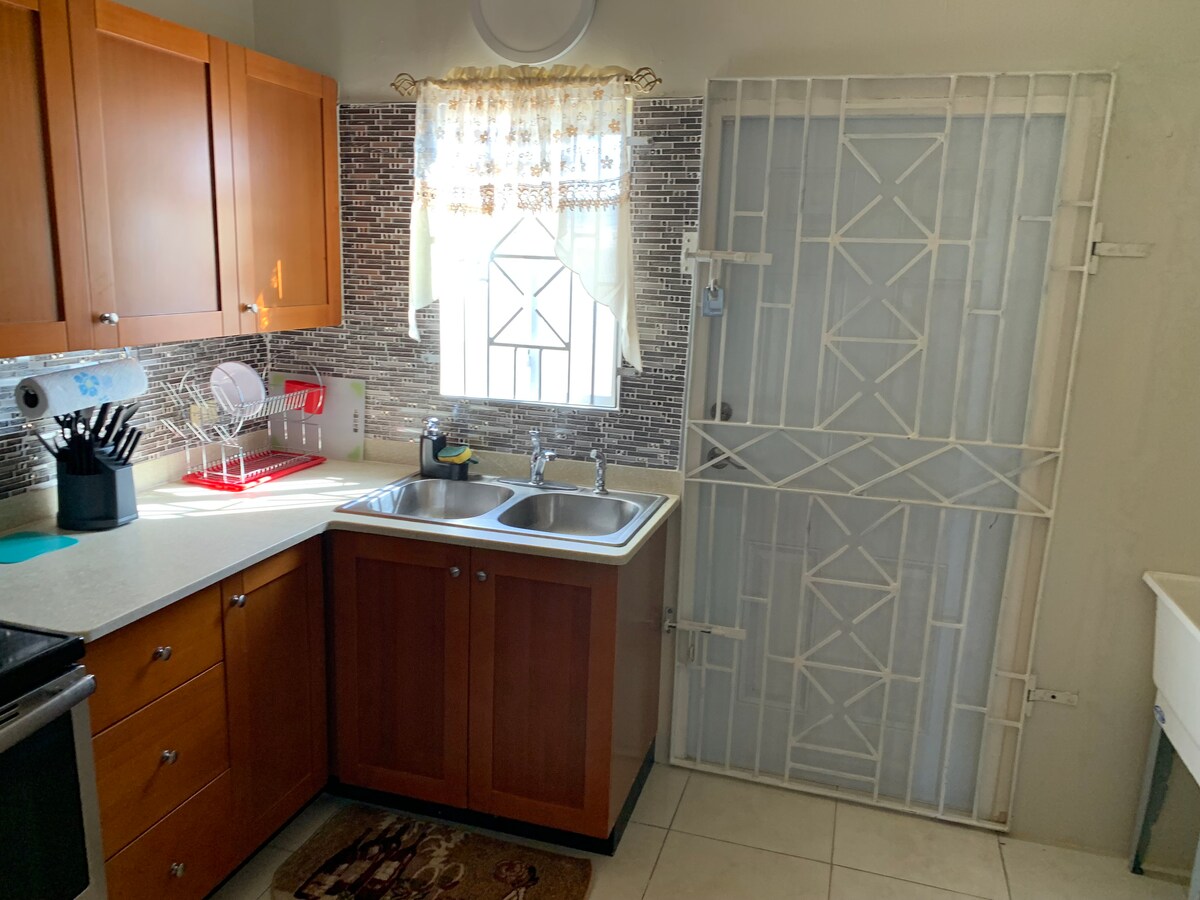 Koppla av och njut av din vistelse i detta bekväma hus med 2 sovrum och 2 badrum som ligger i ett säkert inhägnat komplex i Portmore. Huset är fullt utrustat med allt du behöver. Perfekt för familjer, affärsresenärer eller alla som letar efter ett lugnt och bekvämt ställe, bara några minuter från stränder, restauranger, köpcentrum och Kingston access.