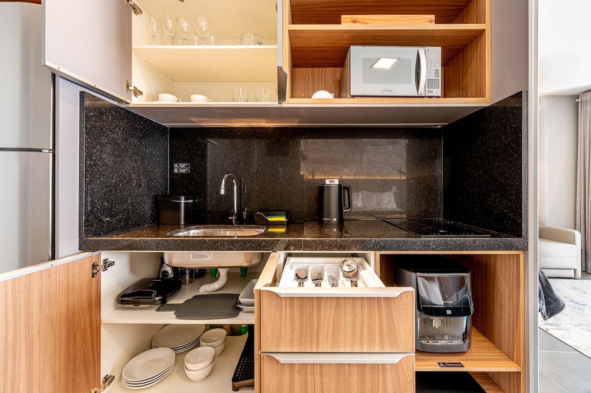 Come stay at our ultracomfy place with many restaurants nearby! 🪴 We have: 24h Heated Pool • 24h Concierge • Premium Bed • SmartTV 43' (Netflix, Disney+, Amazon, YT, abertos) • Fast Wi-Fi (350 mg) • A/C • Closed Garden • Hair Dryer and towels • Equipped Kitchen • Induction Stove • Wine Glasses (w/ bottle oppener) 24h Gym (one of the best) • Cowork Space • Laundry Place (pay-per-use) • Elevators • Paid Garage • Bicycle Rental (free) Pets are welcome (with extra pay) 🐶 Send us a message!